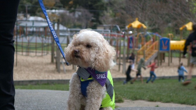 The nine-year-old blond spoodle is one of three dogs that teacher Elizabeth McKee takes into primary schools across Upper Hutt and Porirua, as part of the charity Ted’s Space.