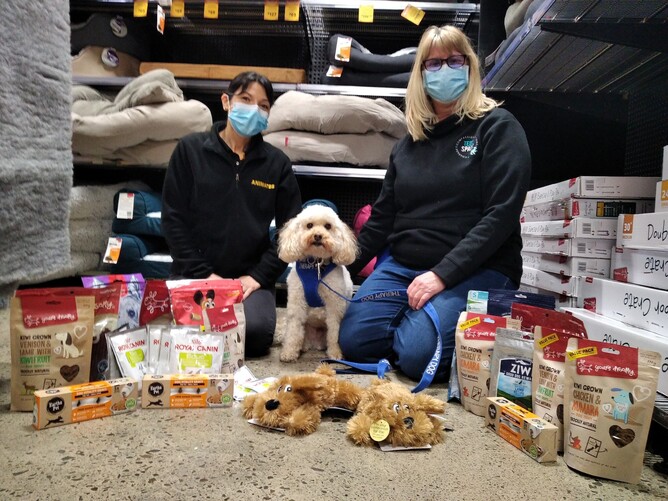 Teddy and his human Elizabeth had a wonderful time at Animates Vetcare NZ deciding how to spend his prize. Here they are with all the (primarily edible) booty..... Thanks to FIND Recruitment for sponsoring this special Award.