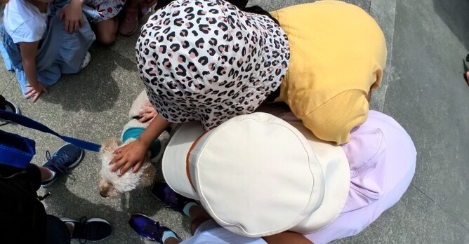 Our first lunchtime visit was filled with squeals of delight as the word 'Teddy is here' quickly spread across the playground and excited children came running to see their furry friend. It was awesome to hear our wee friends remind each other 'don't forget, just one hand to pat Teddy' as they kept Teddy safe in the busy playground.